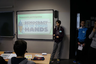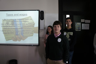 This was one of the most gratifying projects my students have ever done. They were able to write a political program, including many propositions about different topics, and defend their ideas in class. At the end of the meetings, we voted and the winner was the party that took the respect to human rights into account in a better way.